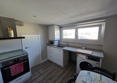 Preciosa Vivienda en Rúa Chantada, al lado de la Muralla, una de las mejores zonas de Lugo. Está totalmente rehabilitada, incluso las instalaciones de agua, electricidad y ventanas de pvc de primera calidad. El piso está en Bajo cubierta (ático), cuarta planta sin ascensor (posibilidad de instalación en el edificio). Consta de cocina americana amueblada con electrodomésticos (placa inducción, horno, campana, combi, lavadora-secadora, microondas) y sitio acondicionado para colocar lavavajillas), zona de despensa con estanterías y termo calentador de 80-100 litros, zona de salón con 2 sofás (3 y 2 plazas), mueble de TV con almacenaje, estanterías y mesa de centro.
