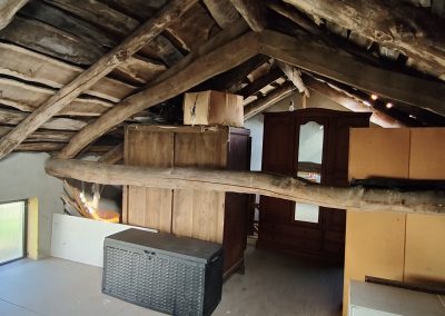 La casa de piedra tiene una superficie total construida de doscientos treinta y nueve metros cuadrados, la vivienda está compuesta de planta baja y alta. En cuanto traspasamos la puerta de entrada nos damos cuenta que estamos en un lugar especial, las vigas centenarias y la arcada de cantería nos dan la bienvenida. La sala de la chimenea para descansar al calor de la lumbre una tarde de invierno. Un salón más formal para charlar o ver una película. En la cocina destaca su amplitud, así como los armarios de madera de Aliso y procedentes de Italia, todos los electrodomésticos son nuevos. Desde la cocina se accede al espléndido porche, totalmente acristalado, vigas centenarias, dos puertas dan salida a diferentes zonas del jardín. En esta planta baja también hay un amplio dormitorio y un baño con ventana y ducha a nivel de suelo. La planta alta, a la que se accede por unas escaleras de castaño, está distribuida en una zona dedicada a despacho, un vestidor que nos lleva a dos amplios y luminosos dormitorios con vistas al jardín y al entorno, un luminoso y completo baño y otro vestidor que comunica con otro dormitorio de dimensiones considerables y que al ser abuhardillado le confiere un carácter especial y unas vistas espléndidas.
