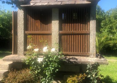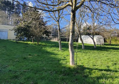 El jardín se encuentra separado del resto de la finca por un cierre vegetal, aparte de los Rododendros, los rosales o la Glicinia, cabe destacar dos Arces procedentes de Canadá o un Alcornoque. En la finca encontramos una zona dedicada a frutales, perales, diferentes clases de manzanos o ciruelos, otra zona dedicada a castaños aún pequeños y otra a nogales. Para los amantes de la Naturaleza, la vida tranquila, los espacios naturales o cultivar tu propio huerto y recoger manzanas o nueces en otoño, sin duda esta es vuestra casa.